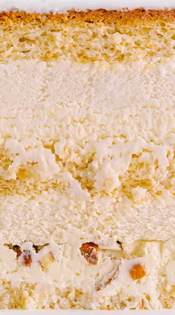 Blaturi fine cu fulgi de cocos și făină de migdale, mousse delicat de cocos și cremă de brânză catifelată. Aromă exotică tip Raffaello, textură aerată și fină.